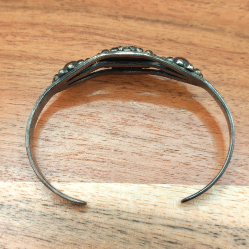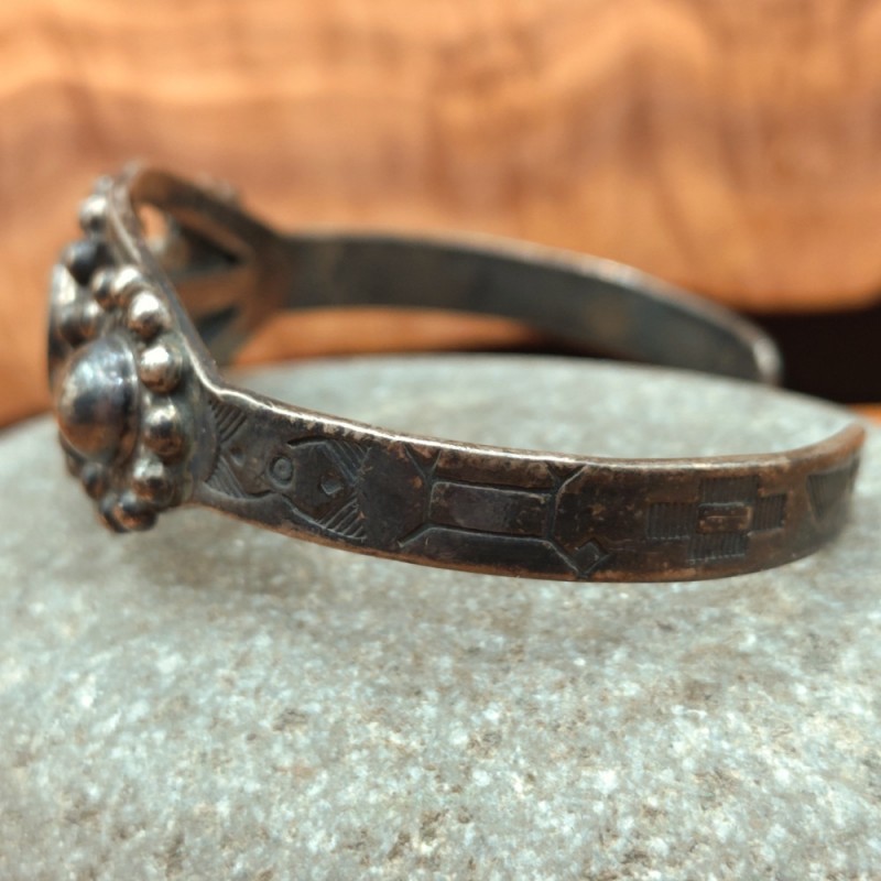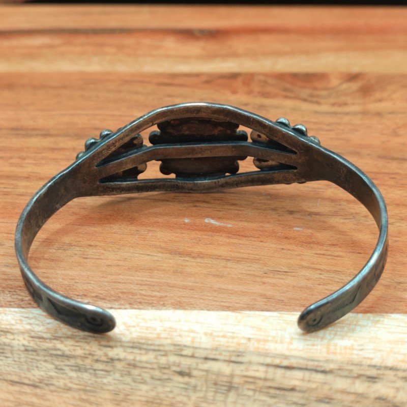 Here is a rare piece for your consideration. This sterling silver cuff features Fred Harvey Era heavy stamping with turquoise design. The condition is shown in provided images, please inspect carefully. Don't miss your chance on this splendid piece.